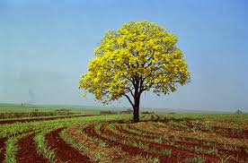 verdes pastagens pontilhadas pelos ipês amarelados pelas flores douradas da